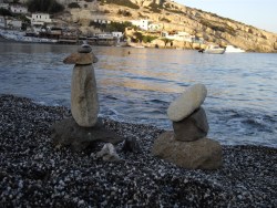 Wohin jetzt? Erstmal mit der lieben Frau H. knappe zwei Wochen in ein kleines Hotel, gelegen zwischen Matala und Kalamaki (siehe Foto links) an der kretischen Südküste.