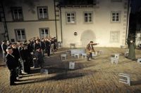 (konstanz 21. juli 2008) Endspurt. Zweimal noch "Anatevka" und dann: Tschüß See. Ein bißchen Sentiment schon, aber nach über zwei Monaten alter Heimat ist es auch gut. Gefahren der Gewöhnung wieder. Unsicheres Wetter und der Possen Fortsetzung haben uns öfters ins Theater getrieben, als es den Meisten lieb war. Nie wieder Konstanz? Eher nicht. Viele sehr liebe neue Kollegen kennengelernt. Den Einen oder die Andere wiederzusehen wäre schön. Und auch sonst. Daher vormerken: Am 8. und am 10.10.2008 bin ich wieder vor Ort. Mit dem "C-Schauspieler" in der Werkstatt in der Inselgasse. Ade und bis denn.